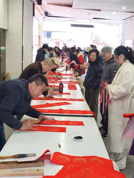 活动持续近三小时,累计送出春联与“福”字约五百幅。直至结束仍有市民陆续前来,展现了群众对传统文化活动的热情。这场多方协作的新春送福活动,不仅用笔墨书写了佳节祝福,更以实践行动展现了当代青年的社会责任与文化担当,为社区冬日增添了融融暖意。
