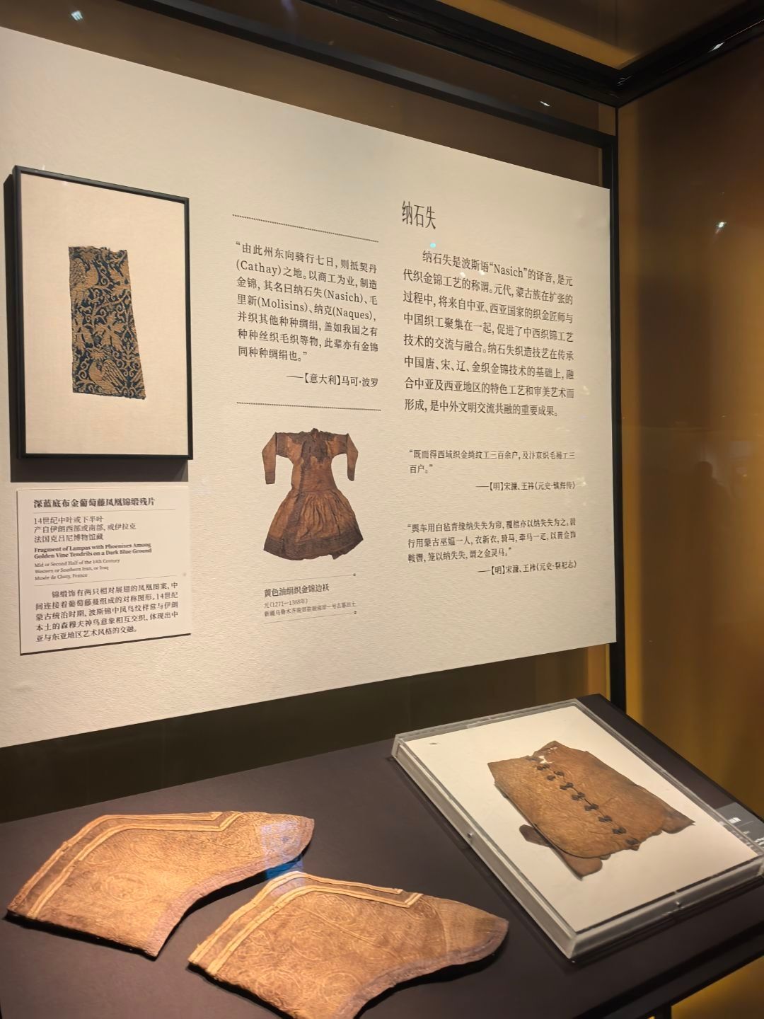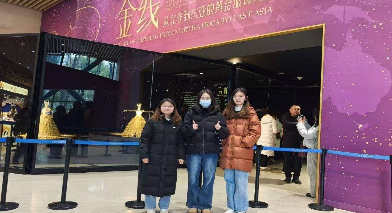 为理解黄金织绣技艺在跨文化传播中的脉络,提升文化遗产保护与利用的实践认知, 1月20日,太阳成集团tyc234cc古韵绵长·国学流芳金线队前往成都博物馆,专题调研“金线——从北非到东亚的黄金服饰风尚”特展。