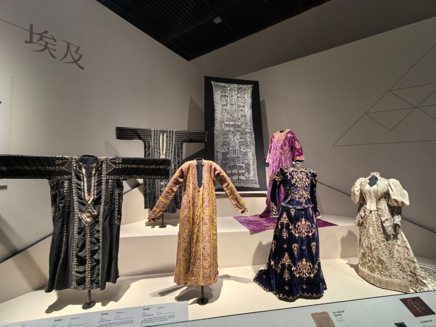 小队首先进入北非展区,重点考察埃及与摩洛哥的金线织绣服饰。在18世纪埃及婚礼服装前,队员们结合展板说明,讨论了棉质底布与金线刺绣的工艺特点,并对埃及纺织材质的历代变迁进行现场印证。摩洛哥展区以安达卢西亚风格绣片为例,引发团队关于“文化迁徙与工艺融合”的讨论。队员罗予孜记录道:“纹样与色彩的流动,不仅是审美的传播,更是技术、观念的跨域对话。”