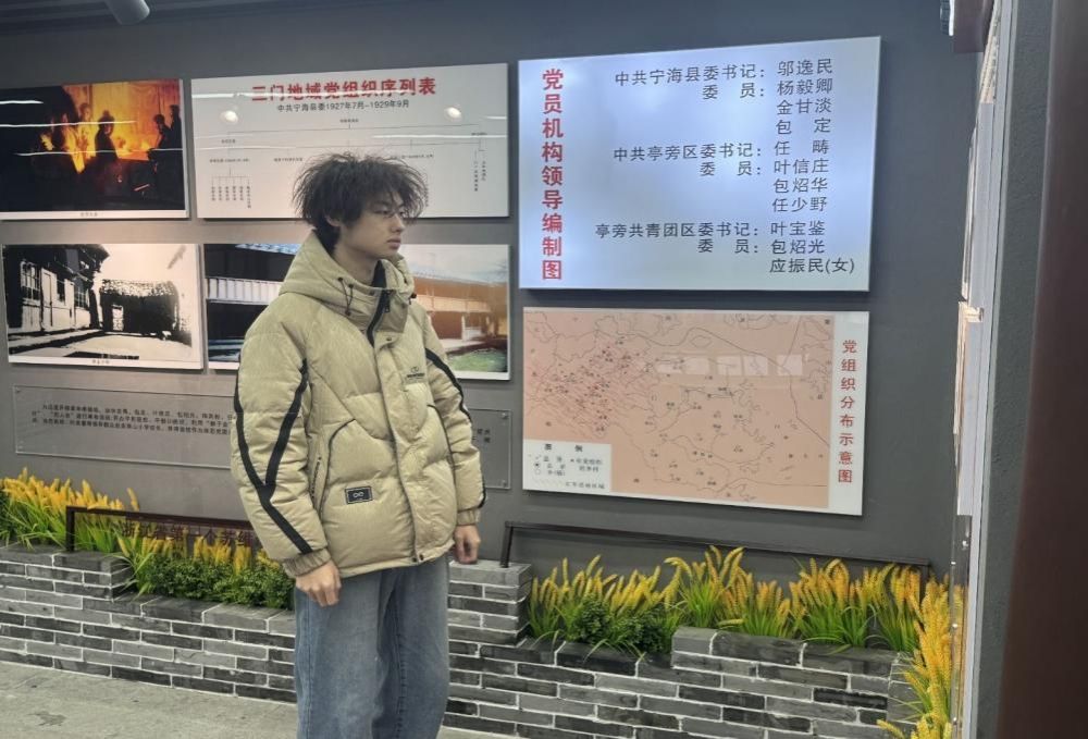 随后,团队前往浙江三门县亭旁起义纪念馆。在“火种”主题展厅,队员们通过图文史料与场景复原,了解1928年亭旁起义的历史细节。在起义旧址石碑前,梅羲池记录下队员们重温入党誓词的画面。讲解员提到,亭旁起义是浙东地区最早的农民武装起义,其“火种”精神为后续革命发展奠定了基础。