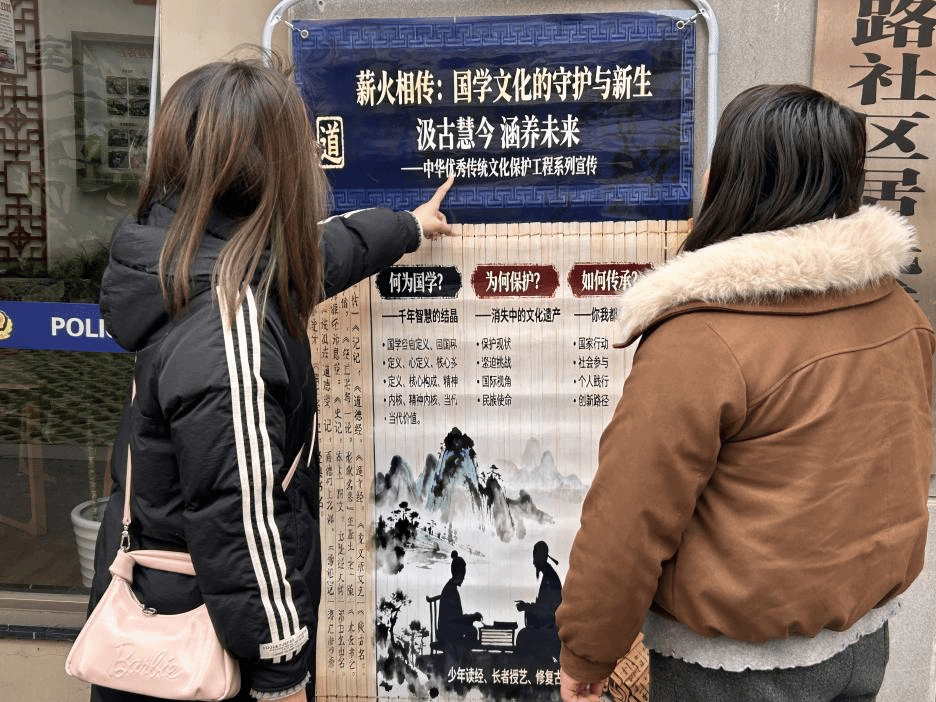 随后,为进一步扩大传播效果,实践队组建的流动宣传小组深入社区街巷,将国学雅韵送至千家万户。队员们手持自主编印的国学知识手册,在社区广场、便民服务站、街心花园等公共空间,主动为居民进行“点对点”的生动讲解。这本手册不仅详实介绍了腊八节的由来与习俗,更延伸至年节文化、传统礼仪、经典诗词等多元内容,堪称一本可随身携带的“微型国学宝典”。