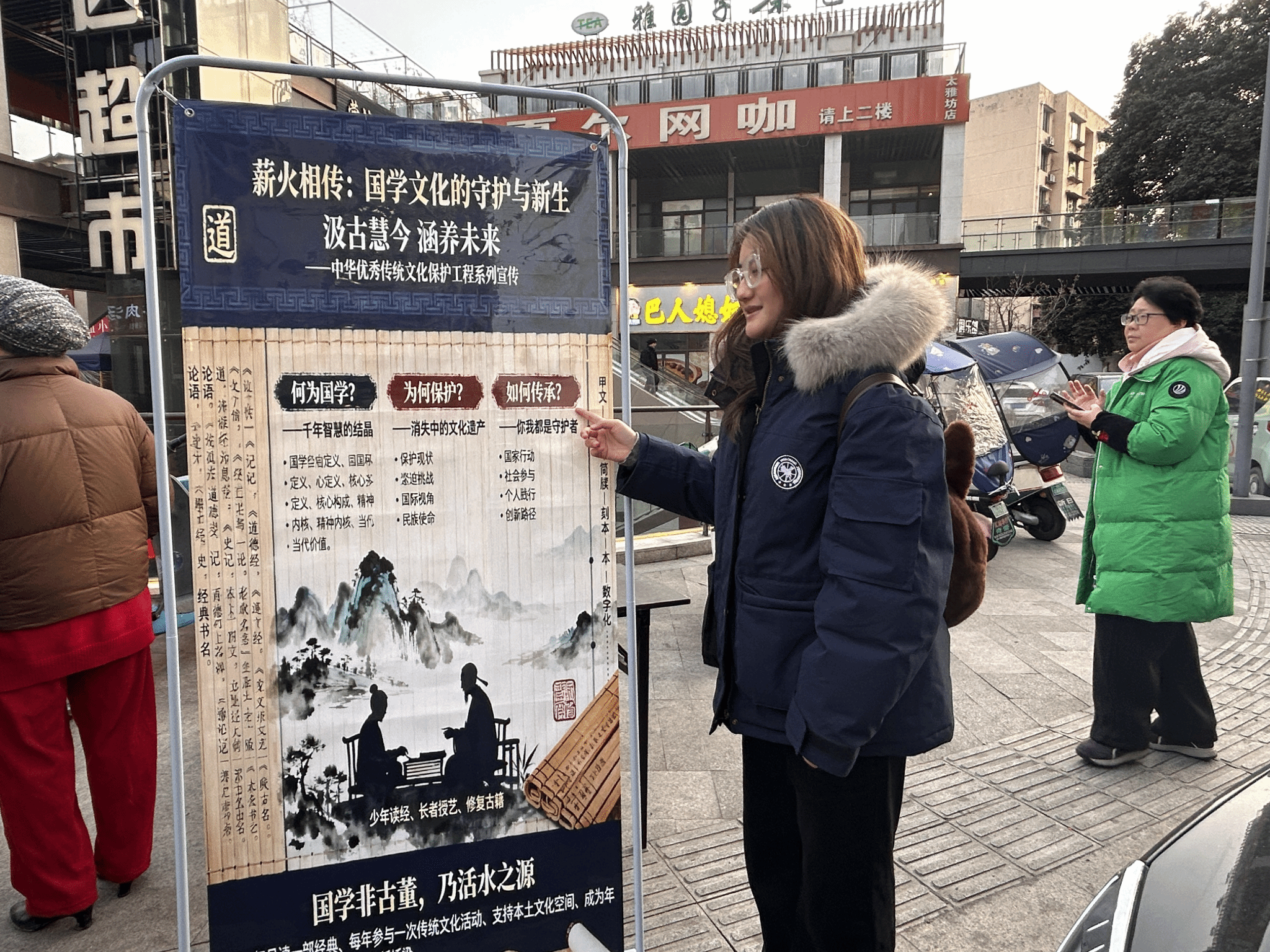 活动伊始,实践队面向社区亲子家庭开设“腊八故事小课堂”。队员们通过制作海报,分发传单,生动讲述腊八节的由来、习俗演变及其蕴含的感恩、祈福、团圆等文化内涵,并穿插各地腊八民谣、谚语竞猜等互动环节,让居民深度参与,增强对腊八节的基础认识。