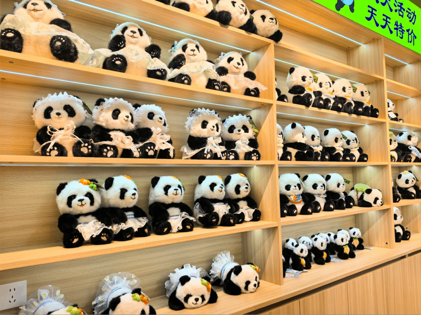 随后,队员们走访基地文创展示区,与工作人员交流探讨,收集熊猫主题文创产品的设计理念与传播案例。队员们了解到,大熊猫从传统的祥瑞象征、和平使者,逐渐发展为兼具萌系特质的现代文化IP,其黑白毛色的传统美学与年轻化的传播方式相结合,形成了独特的文化传播效应。