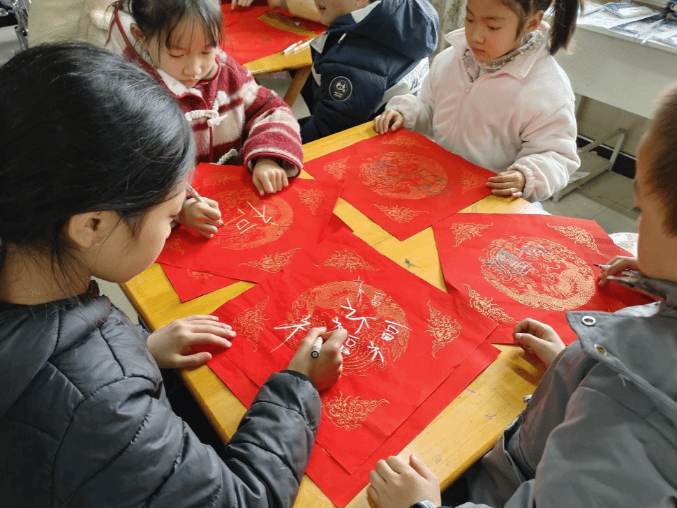 起初,不少小朋友表示这是他们第一次写“福”字和对联,在书写过程中感到很困难,但在小队成员的耐心指导下,大家逐渐找到了手感。有的小朋友先在草稿纸上反复练习笔画,有的则大胆提笔。当一个个或稚嫩或工整的“福”字、“春”字跃然纸上时,孩子们脸上都露出了灿烂的笑容。