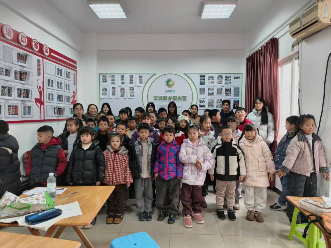 最后,全体师生及家长合影留念,实践团成员有序引导家长接孩子离场,本次“文润新乡阳光营”结营活动圆满落幕。此次活动既为寒假支教实践画上圆满句号,也在互动与总结中赋能乡村青少年素质提升,以青春力量助力乡村文化振兴与青少年全面成长。