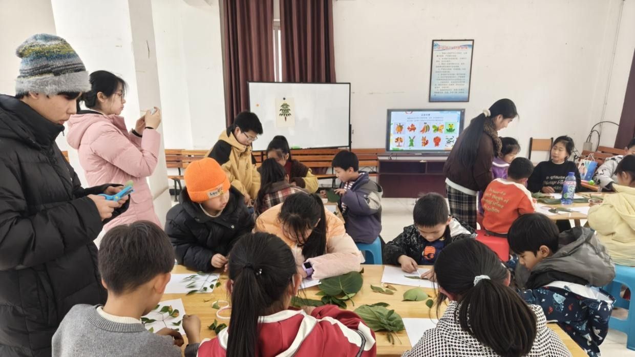 为帮助小朋友感受自然之美、舒缓心理压力,培育积极乐观的心理品质,2月3日,雅安市天全县新场镇文化站,一场以“树叶贴画——自然美学创作课”为主题的心理健康成长活动温情启幕。遇见成长・不期而遇-蛋仔派队主讲人何欣奕携手5名志愿者助教,带领孩子们走进自然与艺术的世界,在动手创作中解锁心灵疗愈的密码。