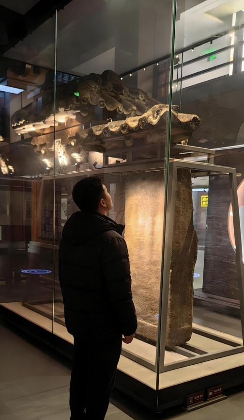首先,队员闫炳旭带领团队步入展馆,“天人合一阙说汉仪”八个大字赫然入目,序厅巨型浮雕将汉阙与射猿、侍父等汉代场景融为一体,瞬间让人仿佛穿越千年。核心展厅内,玻璃展柜中陈列的9件汉阙残件尤为震撼,阙顶与阙身历经千年风雨侵蚀,纹路依然清晰,精巧的斗拱结构尽显汉代建筑的精妙匠心,这是博物馆首次将散落在田间的文物实物集中展陈,让观众得以近距离触摸历史的温度。