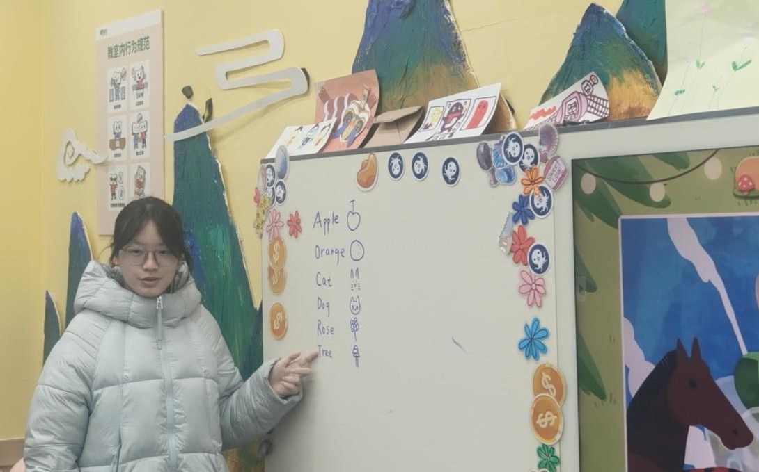 寒假期间,职涯启航·助力梦想·青力青为小队队员毕艾嘉走进成都新东方建设路校区,主动承担双语表演班与美术班助教工作,以认真负责的态度配合授课教师开展教学辅助工作,在实践中锤炼能力,用热忱陪伴学员成长,圆满完成了寒假助教任务。