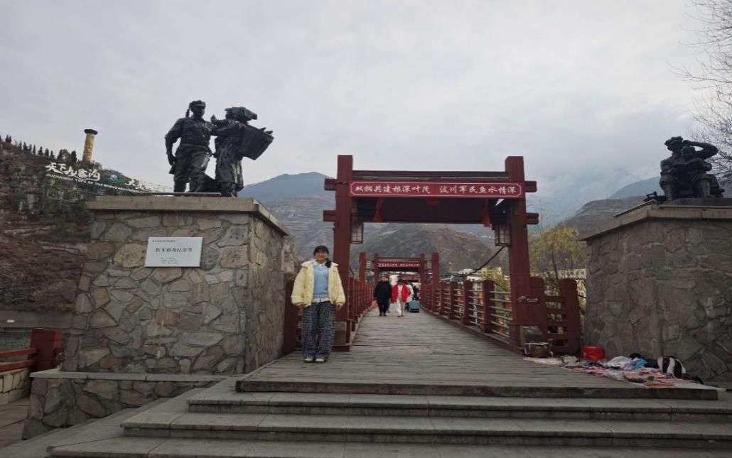 团队一行先来到位于汶川县威州镇的红军桥及革命烈士纪念碑。这座横跨岷江的桥梁,承载着一段鲜为人知的长征记忆。站在桥头,一座庄严肃穆的革命烈士纪念碑映入眼帘,碑顶的五角星在冬日阳光下熠熠生辉。团队成员在纪念碑前肃立默哀,向长征途中在汶川英勇牺牲的红军烈士致以崇高敬意。 走在红军桥上,手抚木质栏柱,远眺奔流不息的岷江水,团队成员仿佛穿越回那段烽火岁月。一位队员感慨道:“当年红军战士在炮火中两次修复这座桥,靠的是坚定的信仰和人民的支持。