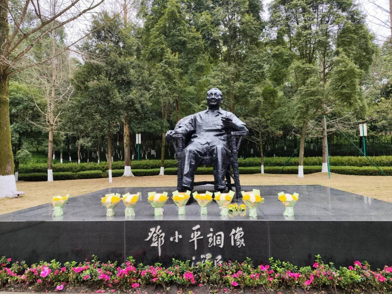 最后,成员们来到邓小平铜像广场。广场上,邓小平同志铜像庄严矗立,面带微笑,目光坚毅,仿佛仍在注视着这片他深爱的土地。全体成员肃立默哀,向邓小平同志铜像深深三鞠躬,深切缅怀这位中国改革开放和现代化建设的总设计师。在夕阳的映照下,铜像显得格外庄严,成员们心中涌动着对伟人的无限敬仰与追思。站在铜像前,大家仿佛都能感受到那份‘不管黑猫白猫,抓住老鼠就是好猫’的务实精神和‘我是中国人民的儿子’的赤子深情。”