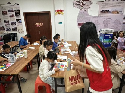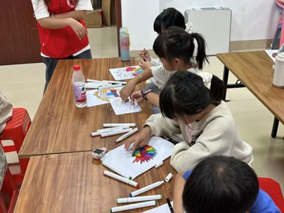 随后,课程秉持“无评价创作”理念,全力培育孩子的自信心。摒弃对绘画技巧的单一评判,通过“作品故事分享会”“小组互助互评”等多元形式,让每个孩子都能感受到被认可、被尊重的温暖。志愿者的真诚鼓励与耐心指导,驱散了孩子们对“画得不好”的顾虑,让他们敢于大胆下笔、自由创作,在表达与展示中逐步积累自信。
