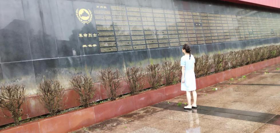 通过提前调查准备,队员确认了当天的行程,准备对万州城区内的两个红色基地进行实地走访和研究。队员的第一站来到了位于太白公园的万州革命烈士陵园。走进陵园,居中宽阔的场地有多个老人在健身,而一旁的烈士事迹陈列馆正关闭着。上面的告示写着暂时闭馆,据工作人员介绍,由于该时段游客较少,便于七月底开始对陈列馆进行维护,但仍可以在纪念碑、英名墙、浮雕等开放地区进行参观。在瞻仰广场,引人瞩目的是广场一旁镌刻着五千多名烈士姓名的英名墙,前方则是雕刻着“万州人民抗争”、“21烈士”、“下川东游击队代表人物”的大型浮雕,浮雕气势磅礴,栩栩如生,使人充分地感受到了革命先辈的英雄气概。广场的尽头是曾润百等21烈士陵墓,黑色大理石覆盖,四周苍劲的常青松环绕,庄严而肃穆。据了解,除今年特殊情况外,往年每逢清明,重大纪念日,这里总会举行仪式缅怀先烈,有很多人前来参观。
