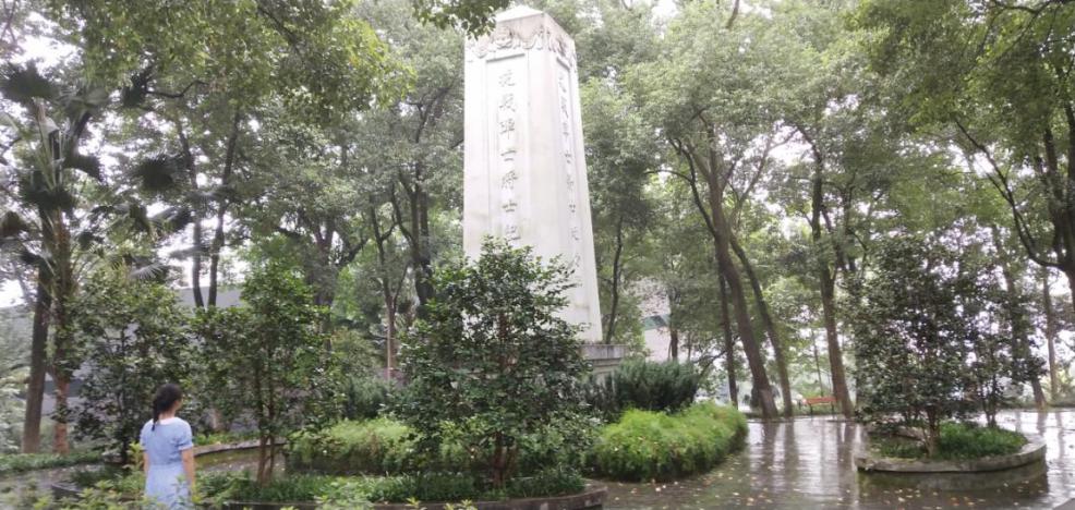 接下来团队成员来到了万州西山公园。来到库里申科陵墓,从白色的拱门望进去,两行烫金的“中苏两国人民的鲜血凝成的友谊永存”引入眼帘。进入墓地,库里申科烈士的雕像在前面矗立,后面是一大块白色石碑,顶上是共产主义和五星标志,石碑正中刻着“库里申科之墓”。石碑后面即是烈士长眠的陵墓了。一旁还有展现了烈士事迹的浮雕,生动而震撼。公园内还有一座抗战阵亡将士纪念碑和一座雕刻着战士们在战争中架起大炮抗战的场景的雕塑,团队成员一一前去瞻仰。