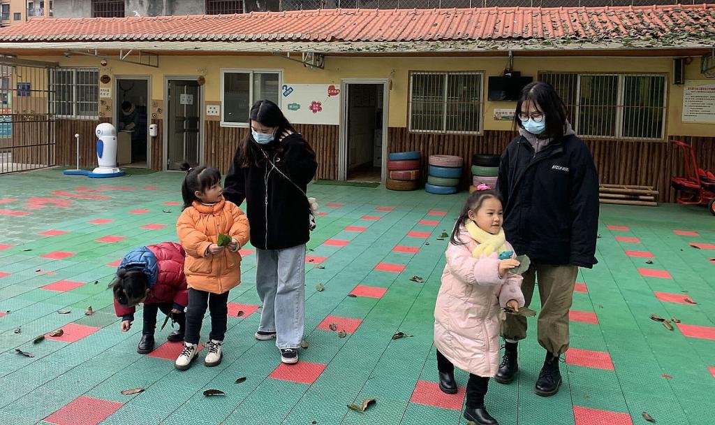 俗话说:“兴趣是最好的老师”。在实践中,团队成员也注重将许多传统文化知识以趣味多元的方式穿插进日常教学和游戏环节中,让小朋友们在轻松愉悦的氛围中学习传统文化。在下午的户外活动中,队员们带领小朋友们一起捡树叶,向小朋友们提倡要爱护环境,并讲述了许多爱护环境的益处,以此培养小朋友们的责任感和爱护环境的优秀品质。
