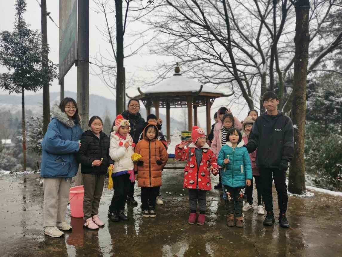 1月27日早上10点,名扬村文化站负责人李老师为队员和孩子们组织了富有趣味性的打雪仗活动作为破冰环节。通过这个活动,孩子们与队员们迅速打成一片,他们热情地同团队成员进行互动,为接下来的调研奠定了良好基调。在同孩子们的交谈中,小组了解到名扬村的文化背景和大致家庭情况,发现孩子们普遍缺乏系统全面的教育,知识水平远远不及大部分地区同年龄段儿童,这也让调研组意识到名扬村文化站对老员工支教的需求极大。