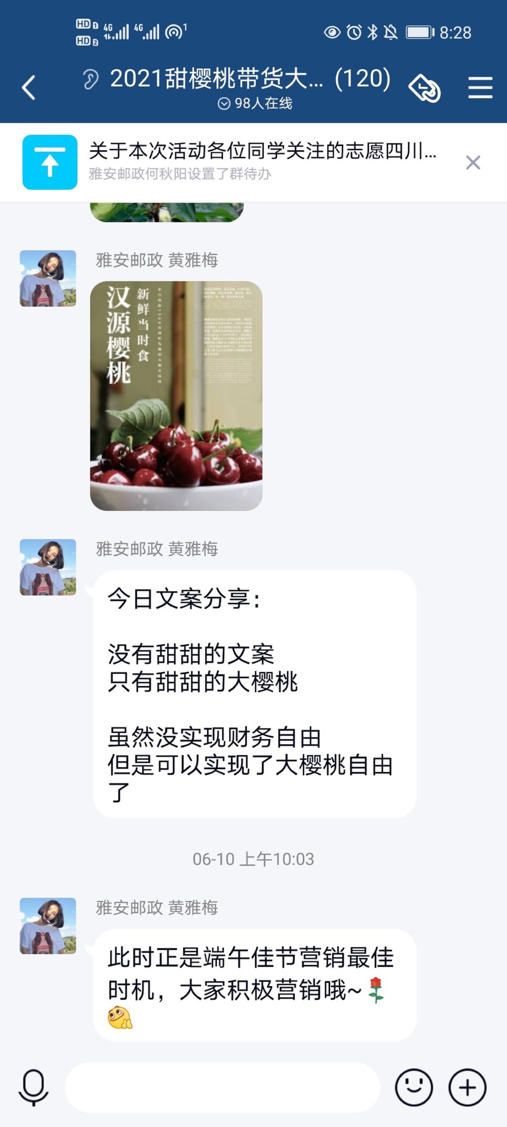 雅安邮政联合太阳成集团tyc234cc团委青年志愿者工作部开展本次活动的目的不仅仅是为了“带货”,更多的是让员工积极投身实践锻炼,增长才干,在乡村振兴和脱贫攻坚中贡献出属于“川农人”的一份力量。