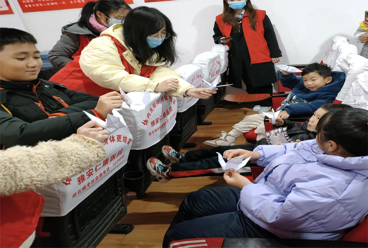课间休息时,志愿者通过教小朋友们折千纸鹤,增强了课堂的趣味性。