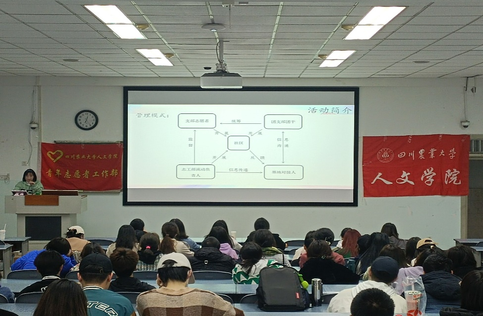 19:00,会议如期召开,由团委志工部部长龙颖超主持会议。龙颖超紧紧围绕“社区彩虹”这一主题,通过回答“什么是社区彩虹”、“本次培训会的目的是什么”和“需要各团支部做什么”三个问题展开了本次培训。