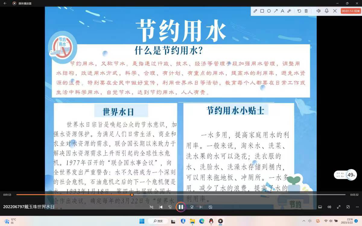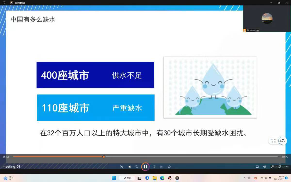 水是生命之源。3月22日为第三十一届世界水日,适逢世界水日来临之际,为提高同学们的节水意识,传播节水方法,进一步宣传贯彻习近平生态文明思想,太阳成集团tyc234cc团委志工部携手水利水电公司团委于3月13日-3月18日期间,举办了“世界水日,你我同行”赛课活动。活动以参与者制作PPT和授课视频的形式展开。