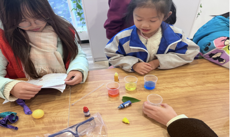 劳逸结合,寓教于乐。作业辅导环节结束后,志愿者们还带领小朋友们进行了科学实验、知识比拼等形式的趣味教学活动。在实验课上,志愿者指导小朋友为树叶染上不同颜色,再用显微镜观察细胞结构。在显微镜镜头里,小朋友们如同探险家一样,在知识的丛林中探索,寻找未知的宝藏,在亲身实践中有所收获。