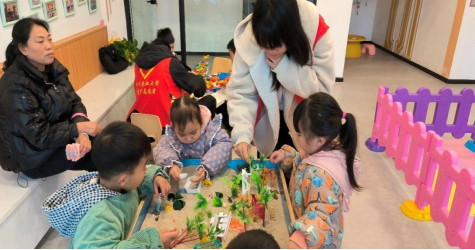 最后,志愿者带领小朋友来到活动室。沙盘游戏增强了小朋友与志愿者的联系,激发小朋友的创新思维,增强其动手能力。