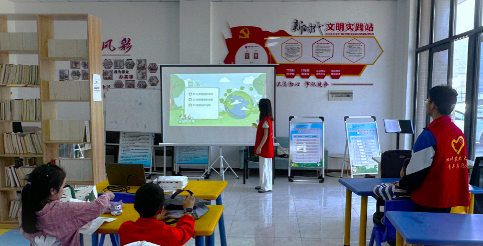 此次活动以科普课堂形式展开。活动伊始,主讲人黄晓慧通过PPT向社区儿童介绍地球生态系统的构成及其重要性,引导小朋友们认识美丽的地球。通过诙谐易懂的比喻及环境污染的实景图片,小朋友们了解到关于地球的基本知识和当前全球面临的环境问题,例如填埋垃圾、破坏植被等。课堂上,小朋友们积极跟志愿者一起朗读课件上的知识点,在互动环节中反思自身行为,并提出改进建议。