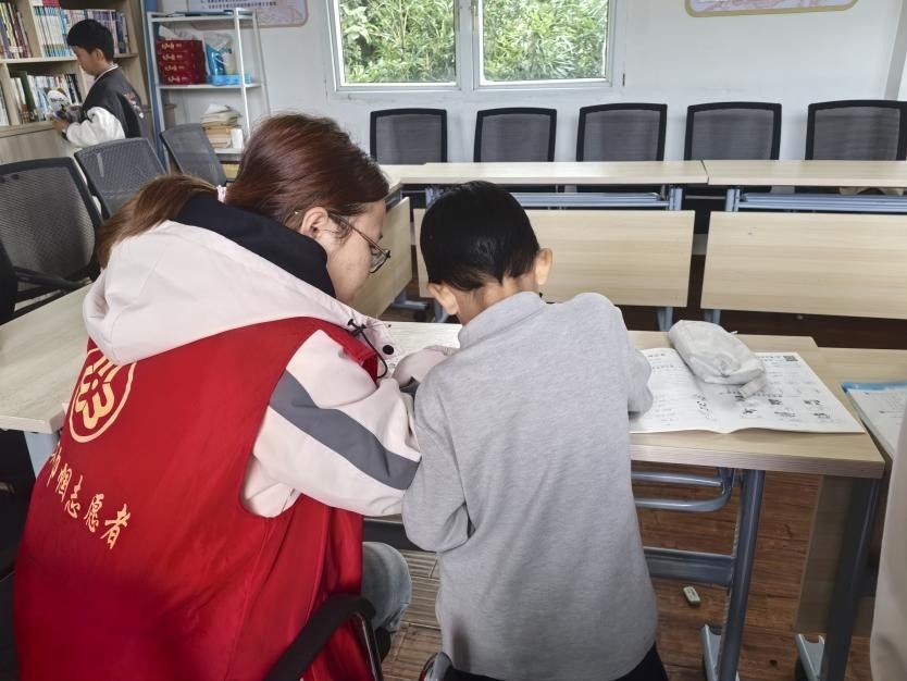 作业辅导环节中,志愿者们耐心细致地为孩子们解答课后难题。针对英语单词记忆、句型运用等薄弱点,他们结合生活场景举例讲解,用生动易懂的语言拆解知识点。同时,志愿者们注重引导孩子们独立思考,分享高效的英语学习方法,帮助孩子们巩固课堂所学,提升作业完成质量。