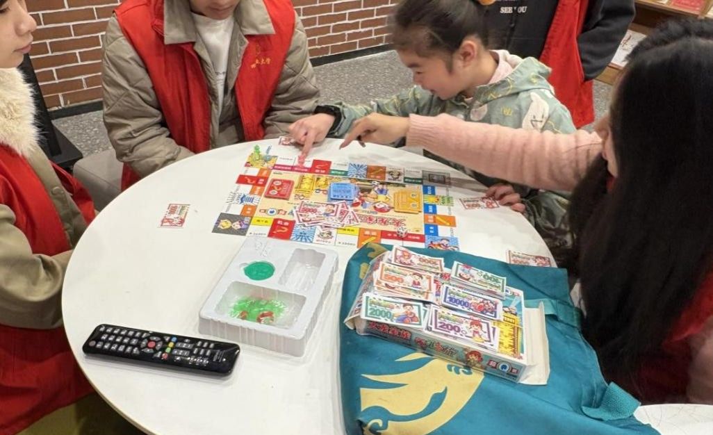 志愿者们全程陪伴指导,耐心讲解卡片规则,帮助孩子们认识卡片上的图案与文字,鼓励大家大胆决策、默契配合。遇到“投资”抉择时,孩子们热烈讨论、各抒己见;完成任务卡挑战时,大家相互加油打气,分享成功的喜悦。当有小朋友抽到“惩罚卡”略显失落时,志愿者会引导团队共同完成补救任务,让每个孩子都能感受到集体的温暖。