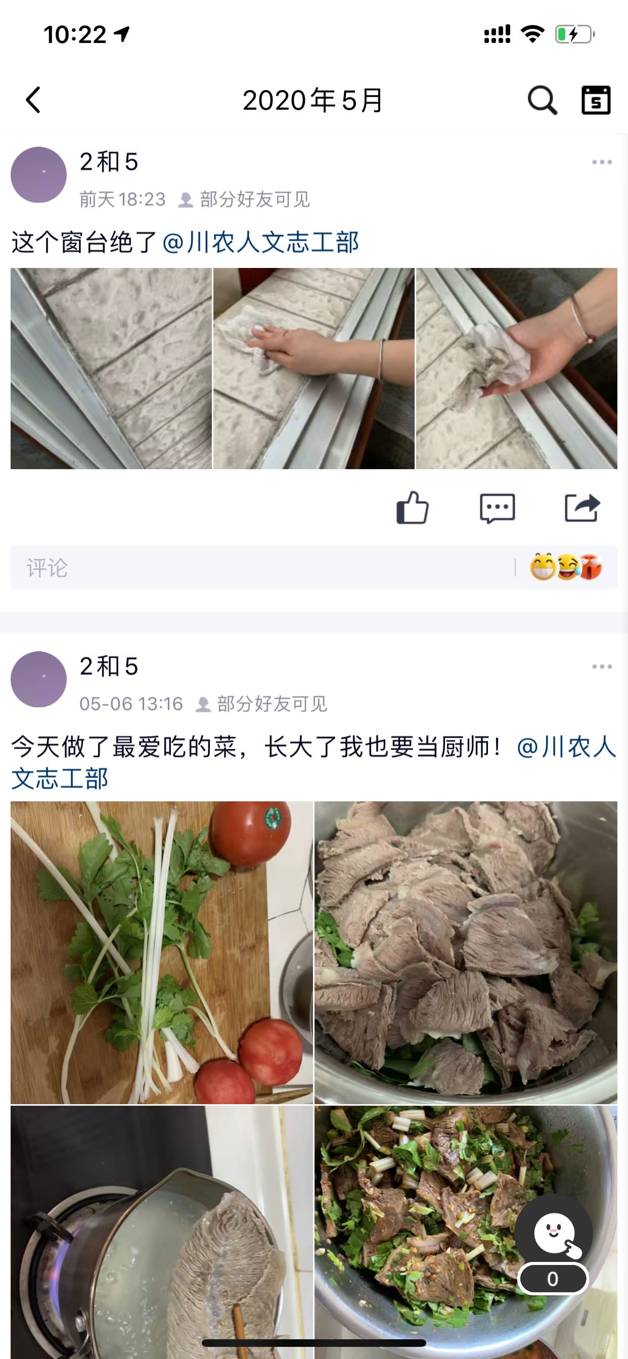 活动中期,工作人员为参与人员提供在线答疑,强调了打卡形式、打卡内容以及每日打卡时间。同学们也展现了自身对居家劳动的不同理解:有的同学选择为父母做一顿美味佳肴;有的同学选择整理房间的衣物、柜台;有的同学选择自己动手洗衣服、晾衣服,还有的同学选择帮助父母做农活。七天的时间里,大部分同学都做到了每天打卡,最终圆满完成了本次活动。“这个活动很有意义,它唤醒了我们对五一节真正内涵的认识。虽然每天做的都只是一些小事,但是从这些小事中我们真正地感受到了五一节的充实。”参与人员李思灼同学如是说道。