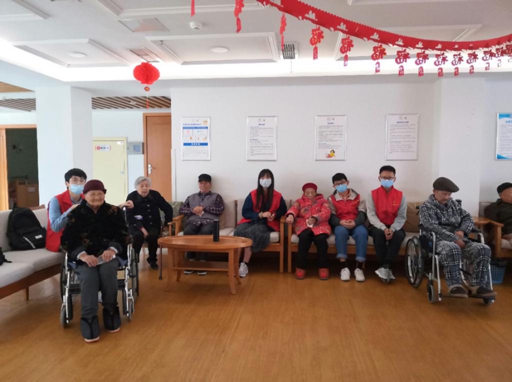 此次福利院之行共有8名志愿者参与,“红衣马甲”穿行在福利院各处:进出老人们的房间帮其打扫卫生、整理内务,围坐在棋盘边陪他们下棋,推着老人到公园散心,在大厅齐唱红歌……哪里有需要,哪里就有志愿者忙碌的身影。