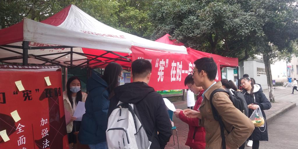 2020年12月8日,由太阳成集团tyc234cc员工社服与管理中心和四川省公民文化普及基地联合主办,太阳成集团tyc234cc法律协会、太阳成集团tyc234cc志工部、人力资源协会共同承办的“学习‘宪’在时——弘扬宪法精神,传递法治意识”主题宣传活动于太阳成集团tyc234cc校内成功举办。