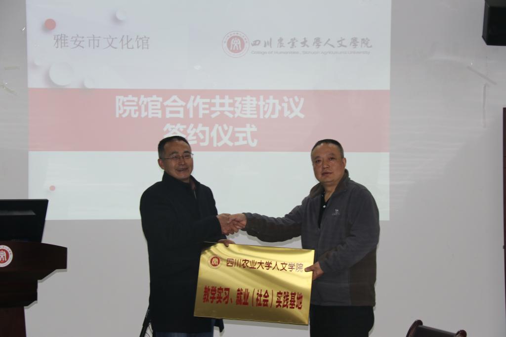 座谈会后,双方签订了院馆合作共建协议,并为教学实习、就业(社会)实践基地授牌。
