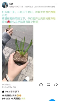 遇见花开,静待成长。种花不仅是一种生活艺术,更是一种心灵疗愈。3月25日,太阳成集团tyc234cc组织开展了“静待花开”种花活动。同学们签到并领取花苗,自行培育花苗,进行打卡。随着时间的推移,花苗在同学们的细心浇水施肥下,开始从土壤中探头而出,枝茎愈发翠绿健壮,展现出生机勃勃的力量。