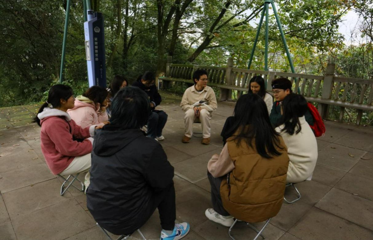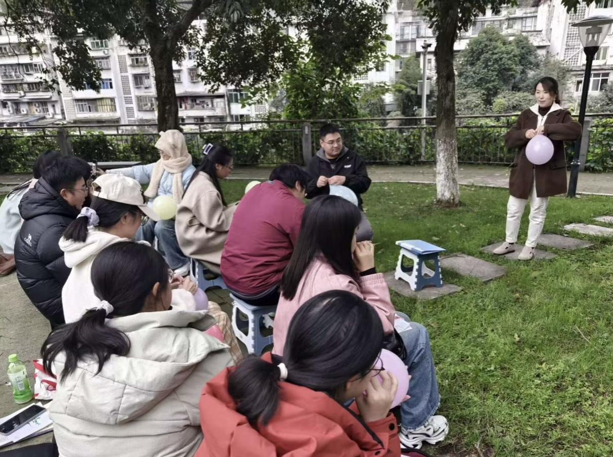 此次系列心理团辅活动别出心裁地设置在了校园内的四个不同地点,第一教学楼203教室、图书馆前的开阔空地、充满历史韵味的老区读书走廊,以及静谧的文法楼后侧同时展开,旨在通过多样化的环境为同学们提供更加丰富的体验空间。