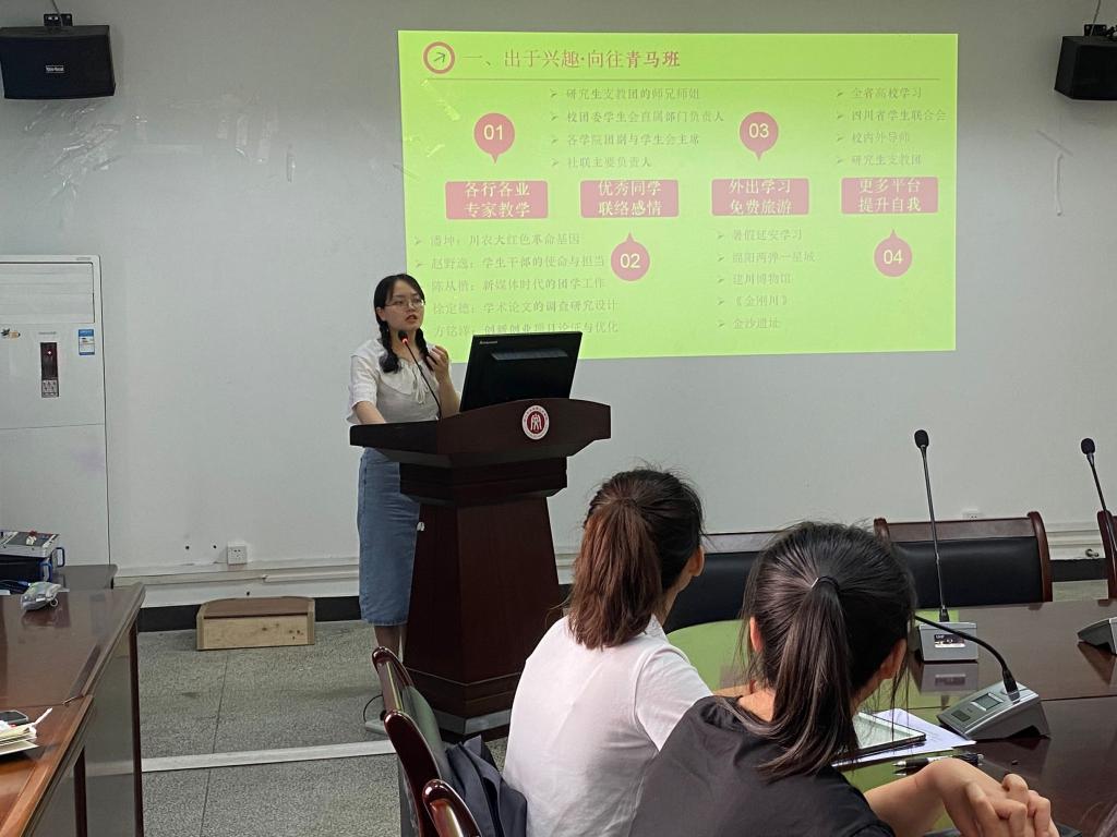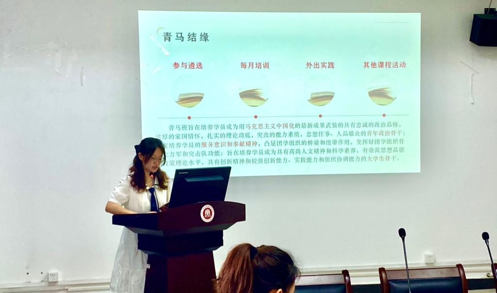 三位校青马班成员围绕“我与青马班的故事”这一主题,从学习经历、成长收获以及讲述党史故事三个部分展开此次培训。