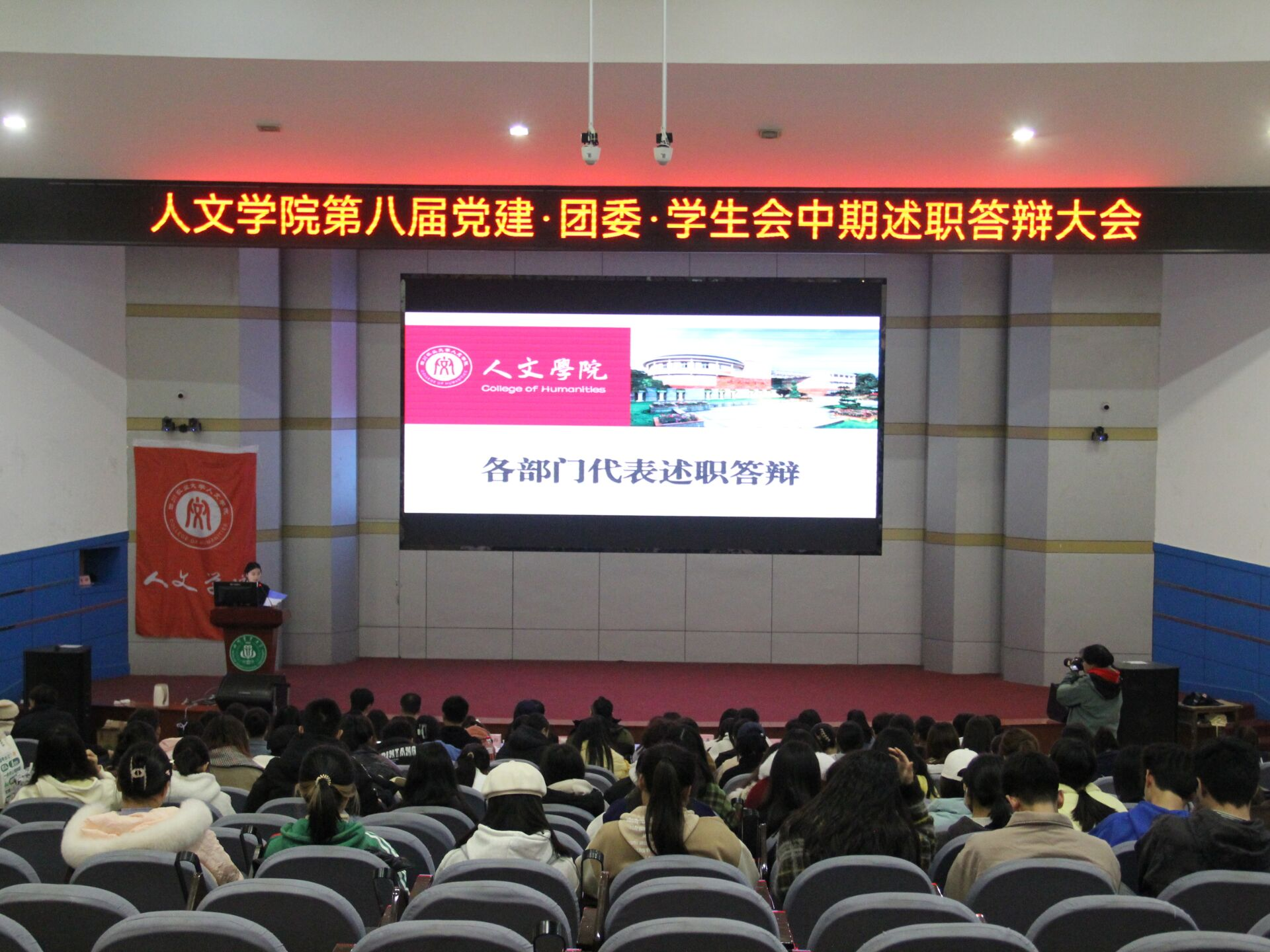 之后,各部门负责人代表进行述职,部门概况开展工作总结反思、未来展望等方面陈述此外嘉宾与主席团成员指出了部门现存问题改进方法向部门负责人进行提问,提出中肯的建议表达了对各部门未来发展的期望。