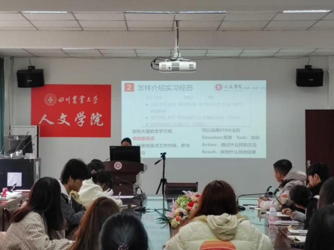 随后,柒小红着重讲解了如何介绍实习经历,例如运用“STAR原则”,或者以简洁的文字概括实习经历,以及用数据展示个人成就。柒小红结合实例强调简历一定要彰显个人能力,简历制作者要用实习经历和荣誉证明个人能力,同时还要展现自身在团队合作时的优势。