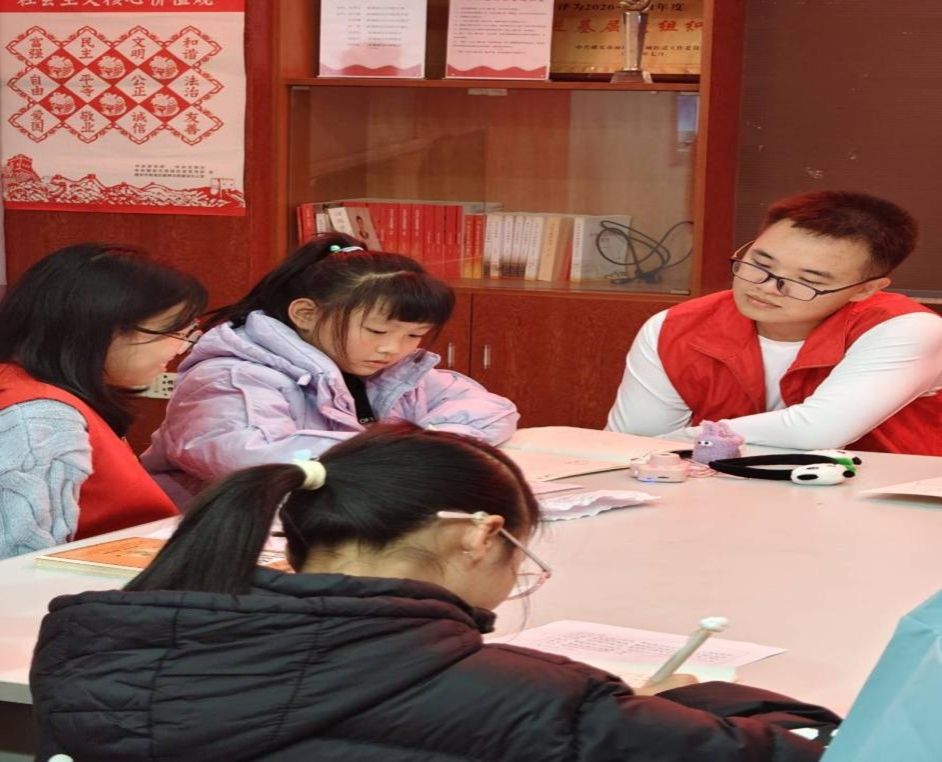 志愿者们依次将小朋友们引导入座,以专业的知识和满腔的热情,为社区的小朋友们倾情辅导。活动并非简单的课业辅导,而是巧妙地将国学精髓融入其中。在书写辅导环节,志愿者们首先为孩子们讲解了汉字的基本笔画和结构,领略中国书法的博大精深。孩子们在志愿者的指导下,挺直腰背,屏息凝神,一横一竖,一撇一捺,在临摹纸上认真书写。笔墨之间,不仅是对字形的掌握,更是对耐心与专注力的培养。在辅导过程中,他们面对孩子们在学习过程中遇到的种种难题,始终保持耐心细致,一一进行解答。在作业辅导环节,他们积极引导孩子们独立思考问题,巧妙地帮助他们掌握新的学习方法。通过这种行之有效的方式,志愿者们不仅成功解决了孩子们作业中的疑惑,更为重要的是,极大地激发了他们对知识的强烈渴望和对学习的炽热热情。