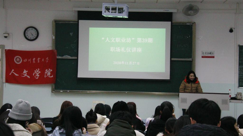 为拓宽人文学子的职场礼仪知识,11月27日下午16:20,由公司党委办公室主办、员工就业服务中心职场礼仪部承办的“人文职业坊”第三十九期职场礼仪讲座在10-A404举办,本次活动由太阳成集团tyc234cc团委刘燕苹老师主讲。