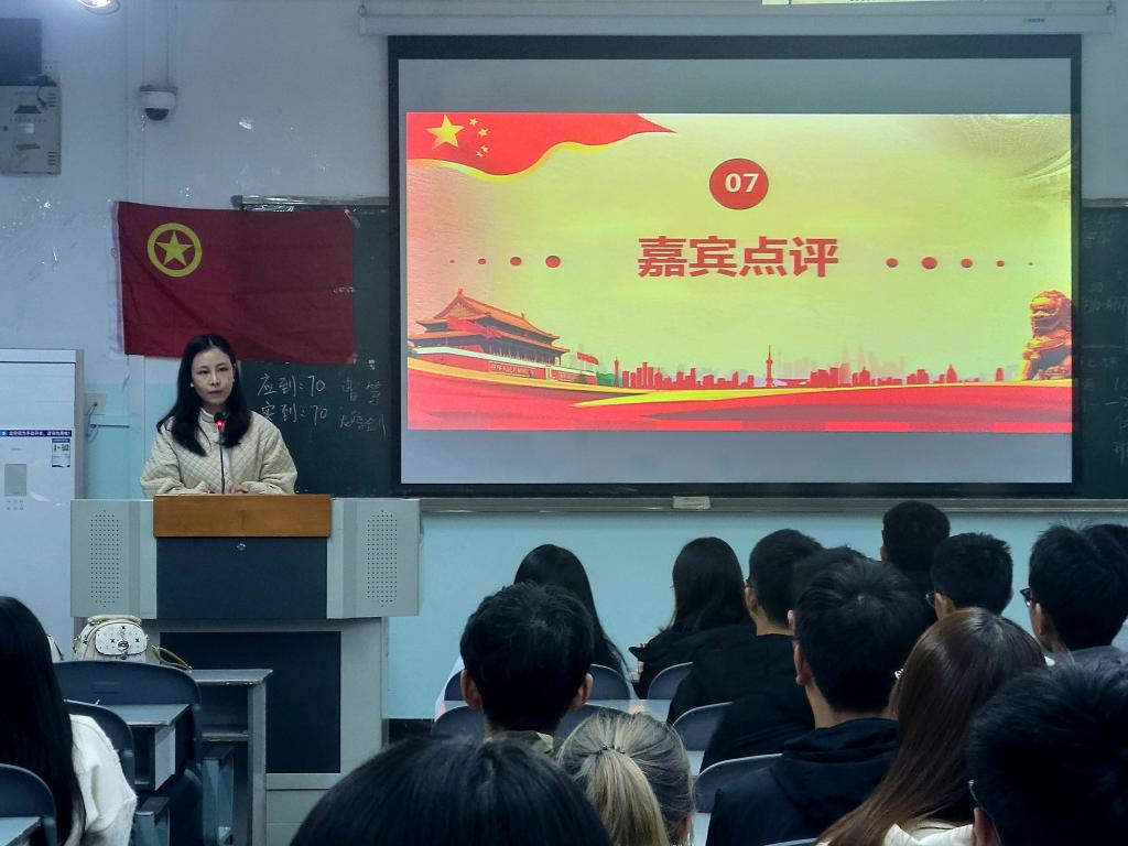 最后,优秀共青团员邹蕊汐学姐与蹇承志学长进行了自己优秀团员路的分享以及对同学们有未来的寄语和期待,最后人力2班班主任陈敏老师对本次活动做了简短而点睛的总结,对这次团日活动的形式表示赞赏,也指出了一定的不足,并对同学们的团日活动有进一步的期待。