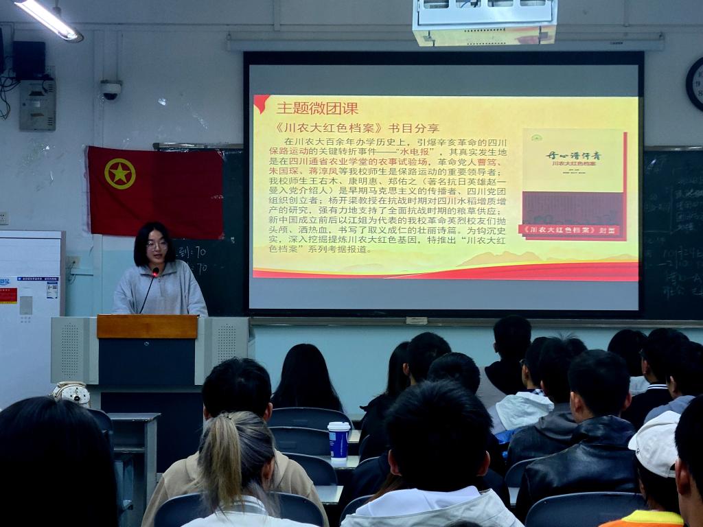 校青马班学员刘峻宏学姐为大家带来了“川农大红色档案”主题微团课的讲解,从一封水电报的故事的讲解中,进一步激发大家对于川农深深的情怀。