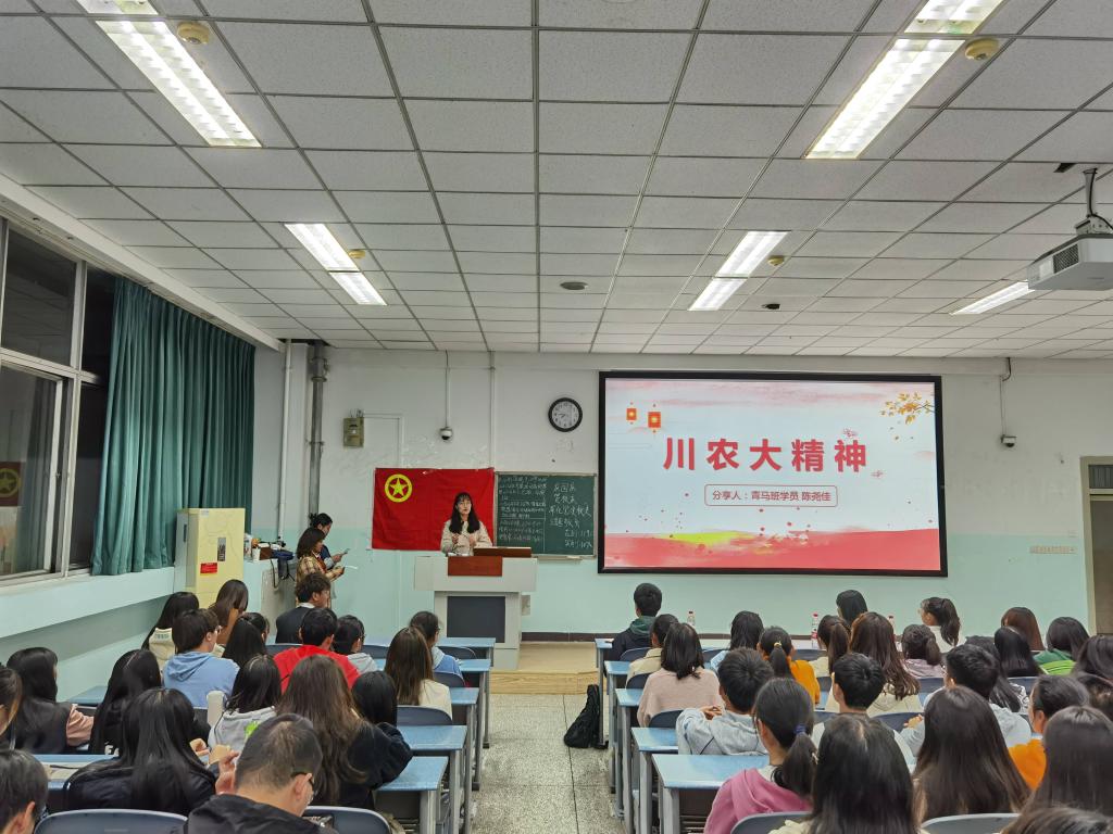 为了深入同学们对党史校史的理解,同学们观看了“青马班学员讲党史小故事”第29期——淮河奇迹的视频,并由同学进行了学习心得分享。以及来自第八期青马班成员陈尧佳师姐向我们讲解了有关于“川农大精神”的主题微团课,从川农大精神的时代价值,川农杰出员工的角度出发,让同学们更进一步感受到了川农的历史底蕴和传承的精神。为了深入同学们对党史校史的了解,进行了紧张刺激的知识竞答环节,在该环节中,各支部同学展现出极高的热情,体现了浓浓的民族情怀和时代担当。