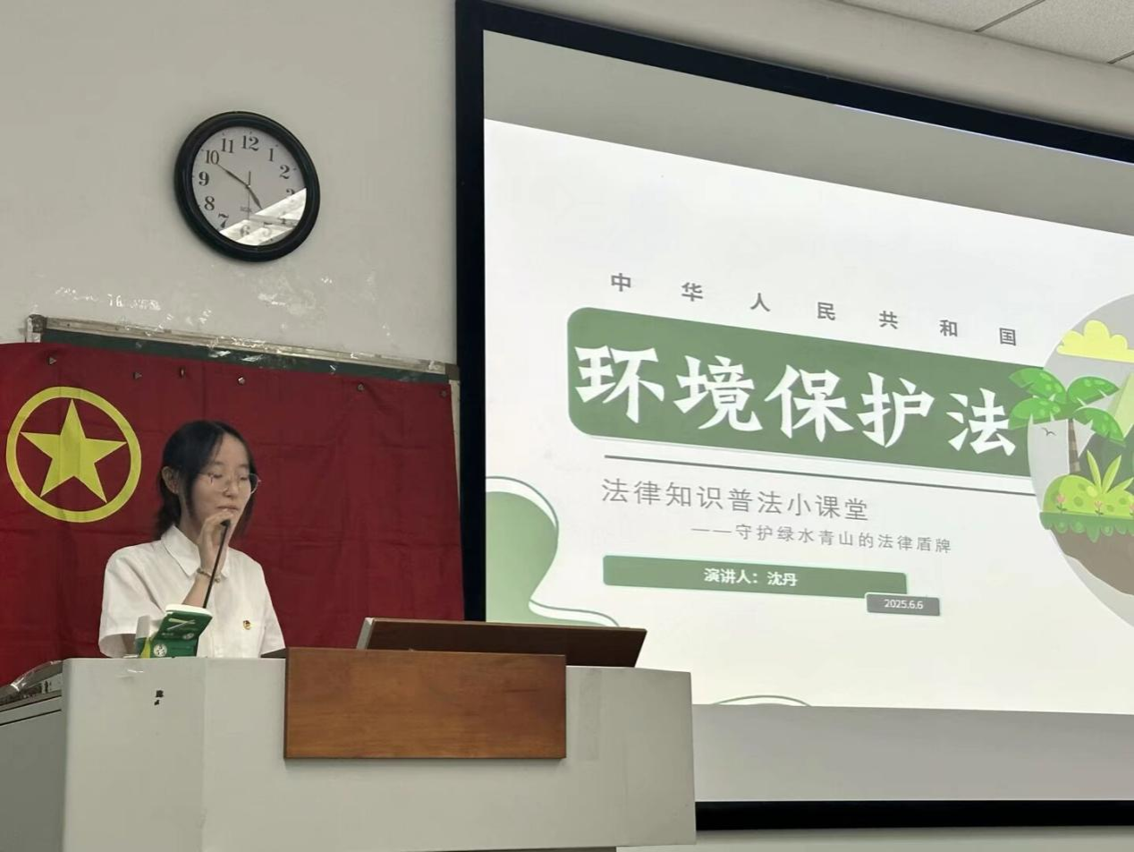 法学支部紧扣世界环境日主题,设计“绿水青山法治守护”互动课堂。结合法学专业特色开展生态保护绿色普法互动小课堂,传播生态保护思想及法律知识。