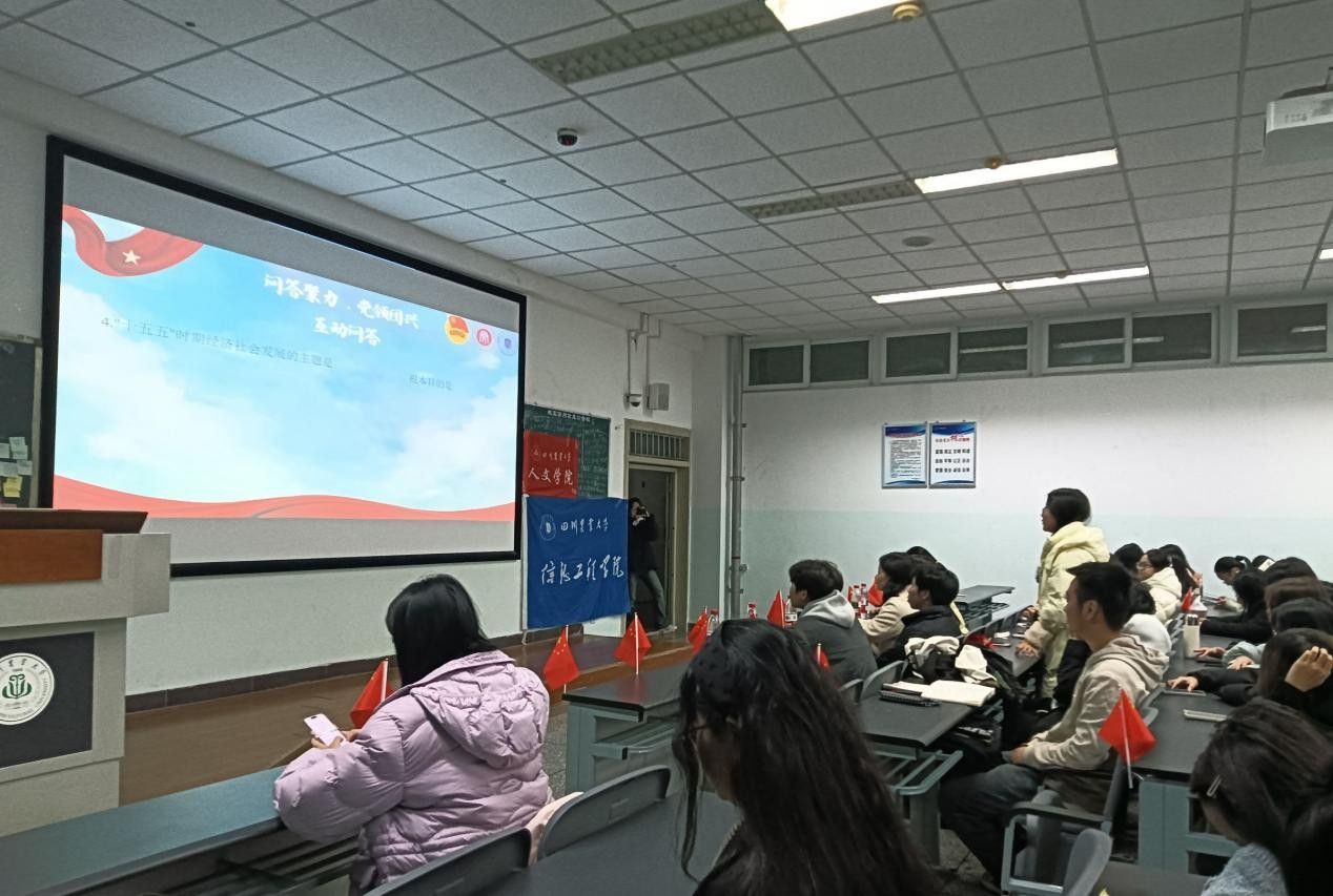 党建引领团建,共话成长担当。班团活动现场播放小班成员参观工农红军强渡大渡河纪念馆视频。现场进行互动提问学习“十五五”规划,深化同学们对“十五五”规划的认识。最后本次班团活动在团歌声中落下帷幕。
