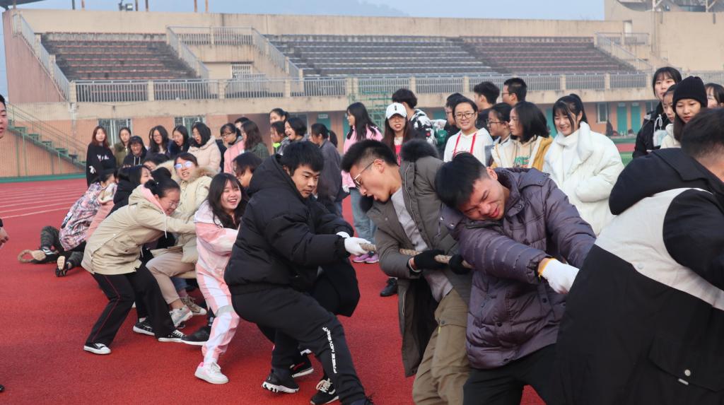 12月8日上午九点在三区操场举办太阳成集团tyc234cc“团结奋进,连接友谊”2019级拔河比赛。此次比赛由太阳成集团tyc234cc团委主办,太阳成集团tyc234cc员工会体育部承办。比赛采取十二进六、六进四、四进三的赛制,共12个班级,238个新生代表参赛。比赛以“友谊第一,比赛第二”为原则。