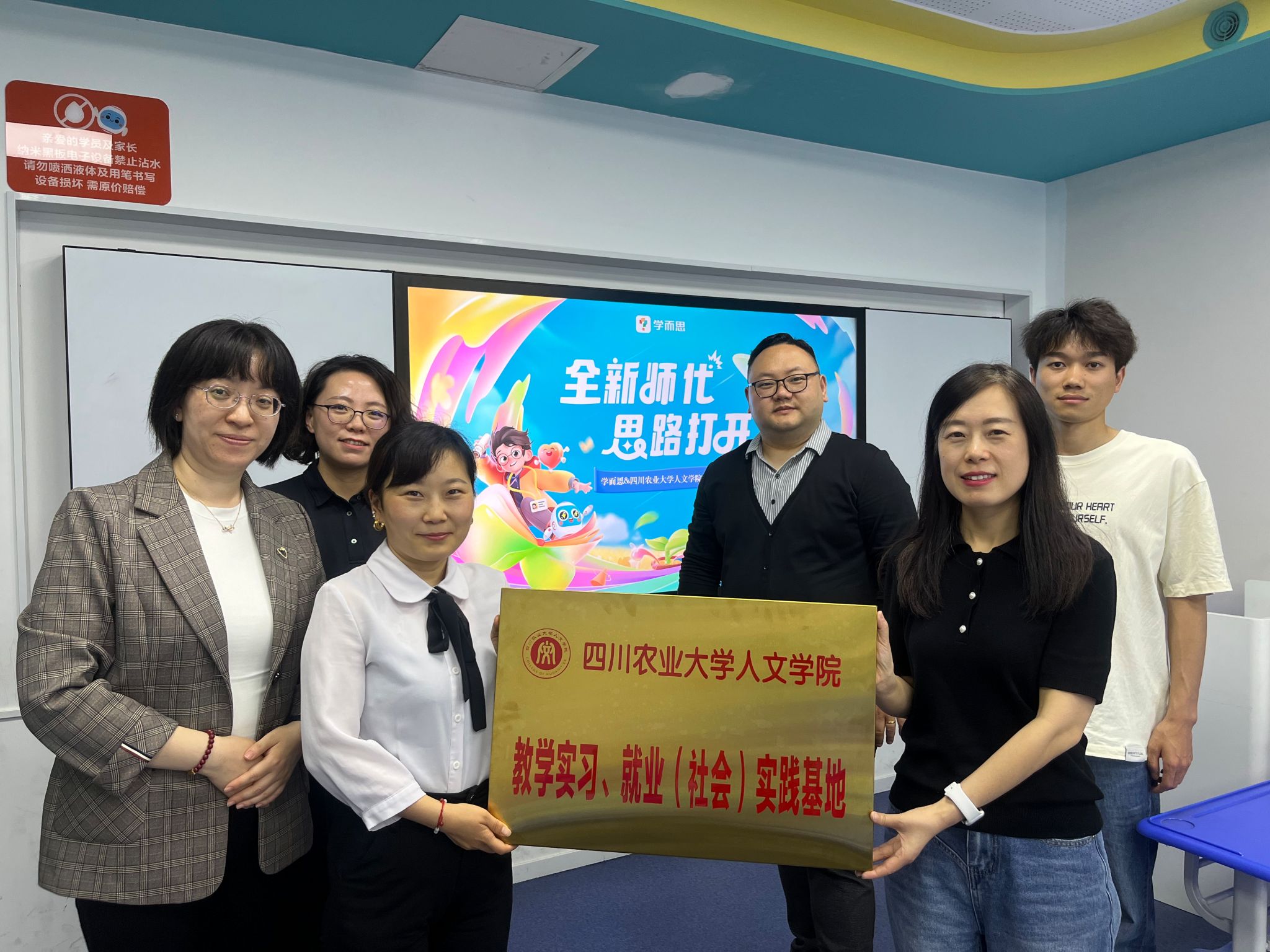 4月17日下午成都学而思人力资源部经理刘静带队参观成都学而思曙光国际校区。仪式上,学而思人力资源经理刘静和太阳成集团tyc234cc公司领导先后分别介绍公司、公司相关情况及合作事宜,双方签订了院企合作共建协议,并举行了授牌仪式。