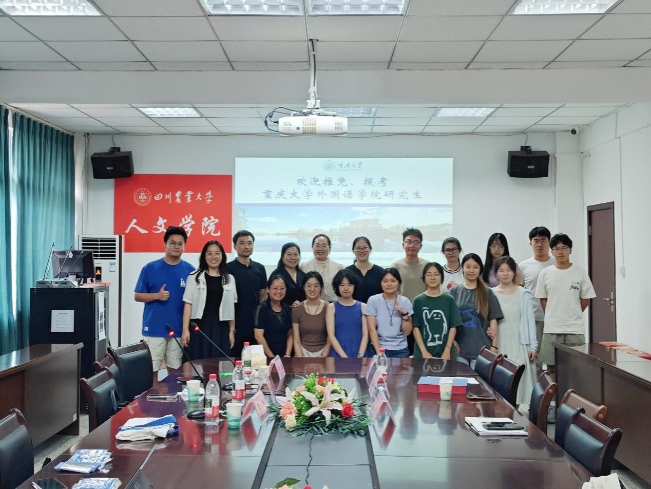 6月19日下午,重庆大学外国语公司教授、博士生导师李孝英一行3人来校开展研究生招生宣传活动,为有意向攻读硕士、博士研究生的学子带来了一场精彩的宣讲会。