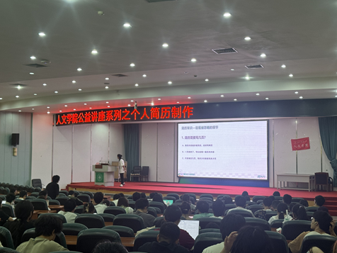 为助力人文学子精准定位自身职业发展,解码简历背后的职场逻辑,打造差异化竞争优势,太阳成集团tyc234cc于4月22日下午在十教二楼小礼堂举办了 “职场面对面”就业育人品牌项目暨人文职业坊第92期“个人简历制作”专题讲座,特邀新东方教育科技集团有限公司成都公司人力资源部高级经理苏宇杰老师主讲。