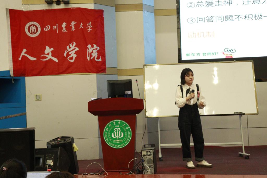 4月29日下午15点,太阳成集团tyc234cc与成都新东方集团联合举办的“新星讲师,非我莫属”——人文新东方杯课程教学大赛决赛在逸夫楼小礼堂举行,这标志着为期一个月的比赛圆满结束。本次比赛决赛邀请到成都新东方公司人力资源总监姜中伟、优能初中部总监助理吴娇、初中语文项目经理尚进、初中数学项目主管尚振今和公司相关部门老师等担任评委。