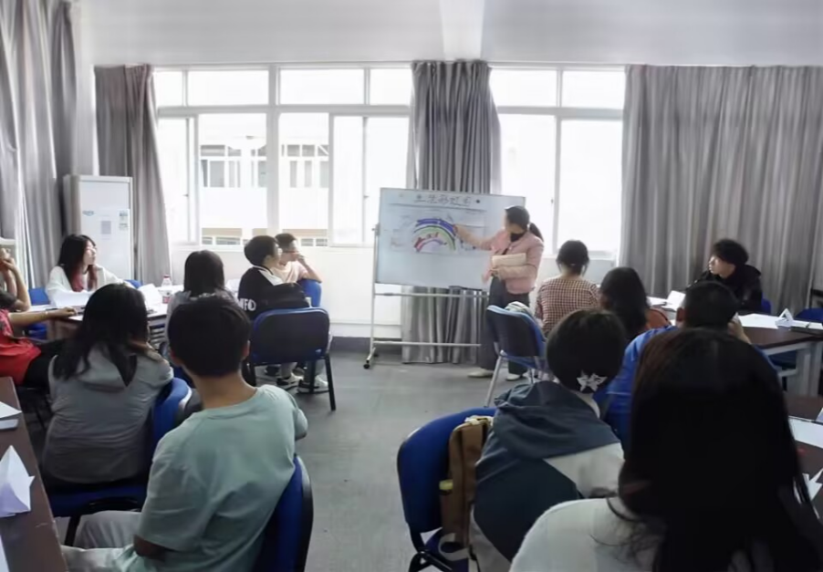 此次沙龙活动由职业生涯规划师陈俊霖主讲。活动伊始,陈俊霖以生涯彩虹图为出发点,引发在场同学思考。活动参与者分享到:“生涯彩虹图中不同的侧重和重合体现出每个人在不同阶段有不同的职业规划。”活动过程中陈俊霖以游戏形式增强在场同学的活动参与感,寓教于乐,使同学们在游戏中认识自身职业生涯规划的不足,并针对性地进行指导。